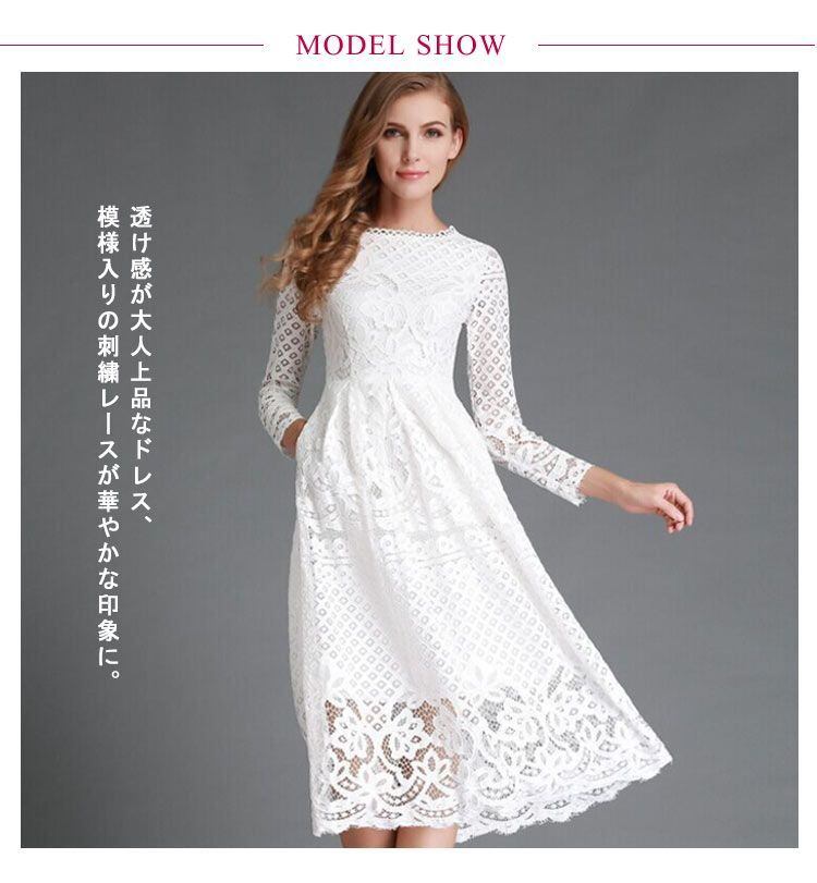 上品で華やかなレースワンピースは、結婚式や二次会、謝恩会などのパーティーシーンにピッタリです。