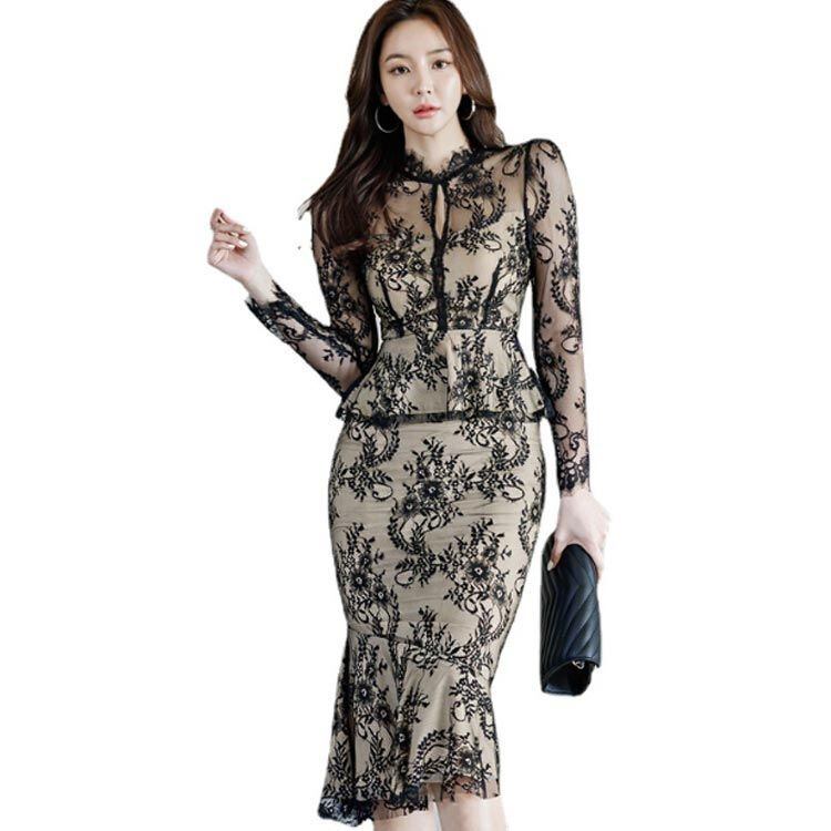 レース レディース オフィスカジュアル 刺繍 結婚式 パーティードレス 卒業式 ドレス フォーマル OL 上品 タイトスカート お呼ばれ マーメイド 二次会 きれいめ 春 春秋 長袖 オケージョン マ#ikawa606544 | オキナ商店