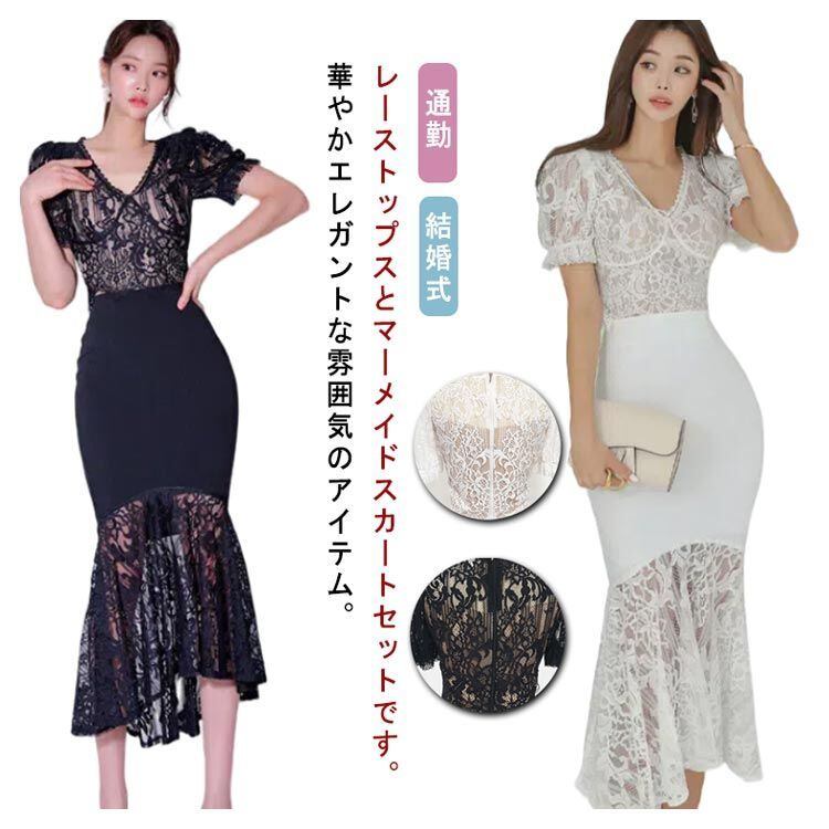 レーストップスとマーメイドスカートセットです。華やかエレガントな雰囲気のアイテム。