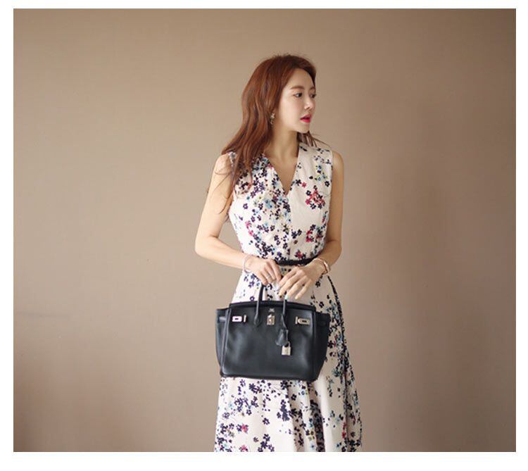 Aラインで大人上品に仕上がり、小花柄で可愛らしい印象を与えます。