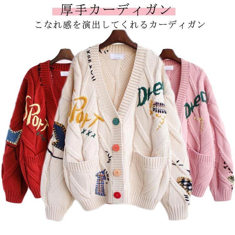 アウター ニット ロゴ レディース セーター 秋 春 秋冬 デイリーコーデ フリーサイズ きれいめ カーディガン ドライブ 刺繍 カラフル ポップ 長袖 旅行 トップス 大人 ゆったり 可愛い 秋冬 #ikawa606533 | オキナ商店