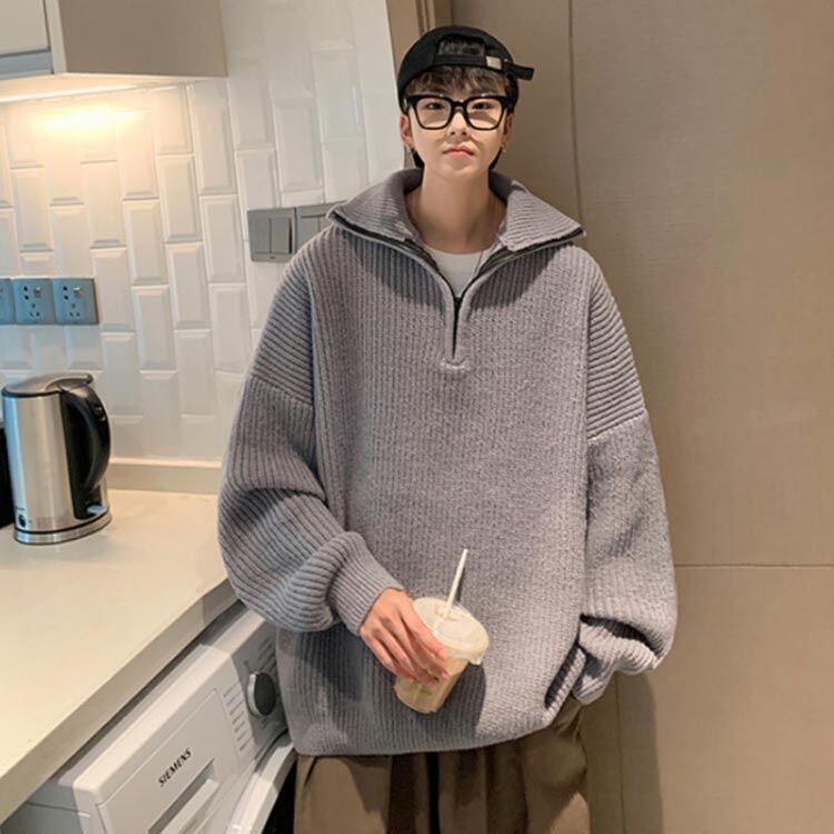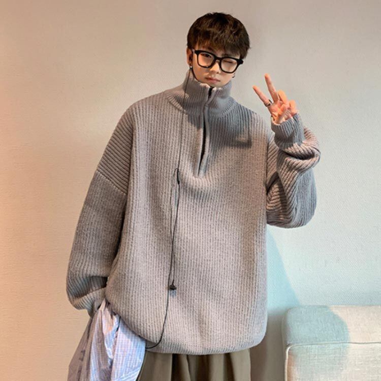 ハイネック ハーフジップ トップス ニット プルオーバー 長袖 リブニット ハーフジップ ハーフジップ 2WAY ニットセーター ハーフジップニット メンズ ジップアップ おしゃれ vネック ハイネッ#ikawa606536 | オキナ商店