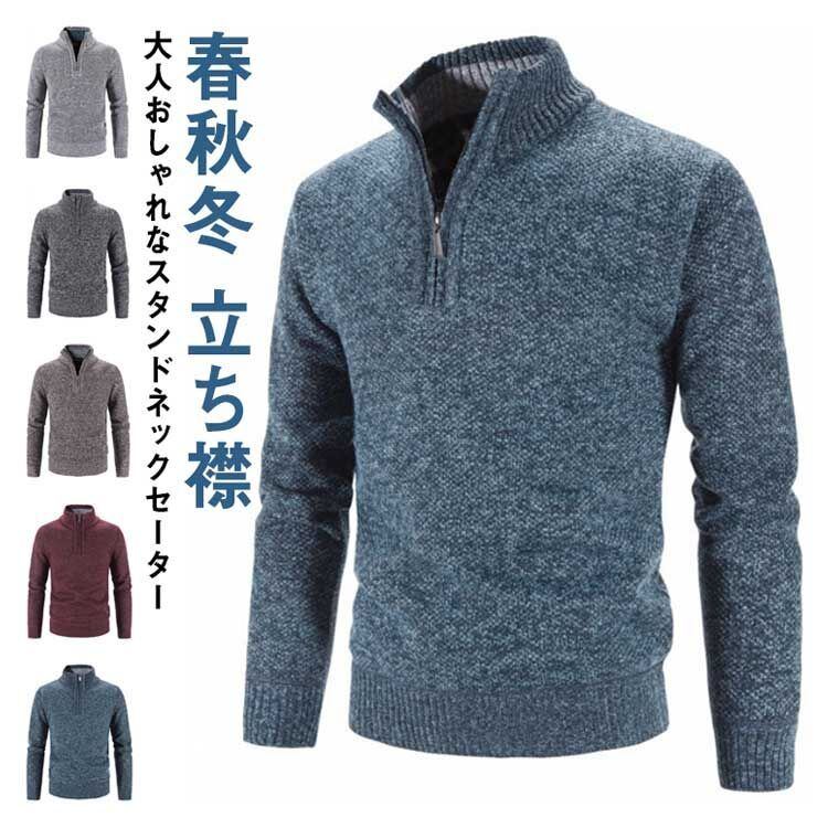 ビジネス 無地 メンズ フォーマル スタンドネック 通勤 立ち襟 ジップニット シンプル ニット 柔らかい あったか 春秋冬 ハイネック ニット 20代 おしゃれ ジップアップ ゆったり ゴルフ 普段#yskma604803 | オキナ商店