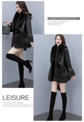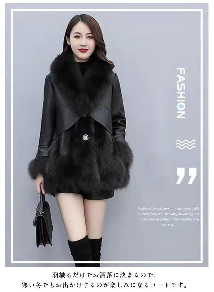 ファー×レザー 毛皮コート 長袖 ファーコート レディース フェイクファーコート 異素材 ファーブルゾン ファーアウター 毛皮 韓国 ショート丈 ボリュームファー 異素材 ファージャケット 冬 可愛い#yskma602977 | オキナ商店