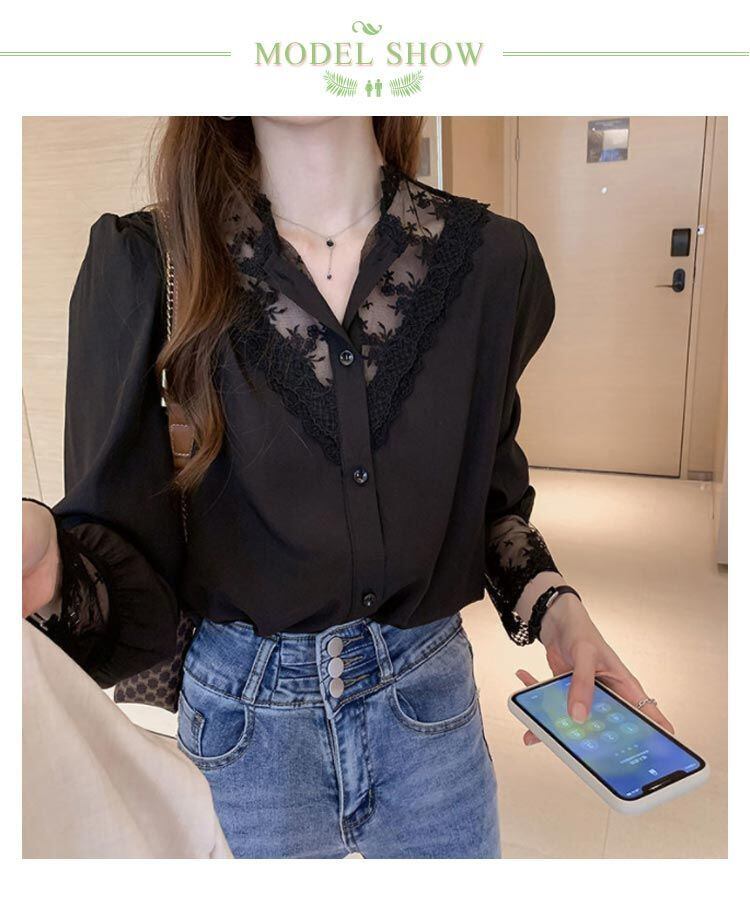 結婚式 ブラウス レース ビジネス S~2XL シャツ 長袖 フォーマル 二次会 カジュアル レディース オフィス S~2XL オフィス 春 夏 秋 シースルー Vネック 大きいサイズ#matud601898 | オキナ商店