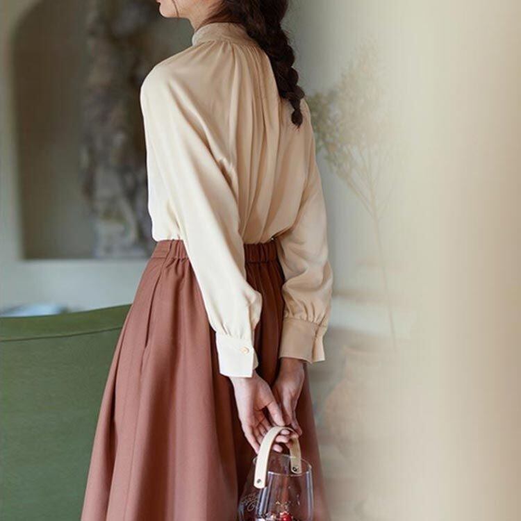 長袖 S~3XL 着痩せ レディース プルオーバー 普段着 体型カバー ブラウス 通勤 トップス おしゃれ ゆったり カジュアル 無地 通勤 S~3XL フォーマル 20代30代40代 春 秋#matud601897 | オキナ商店