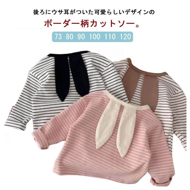 キッズ カットソー 子供服 ウサ耳 長袖Tシャツ ボーダー柄 子ども服 Tシャツ ベビー トップス こども クルーネック 子ども ロンT 綿 かわいい コットン ガールズ 春 女児 春服 カットソー #matud601880 | オキナ商店