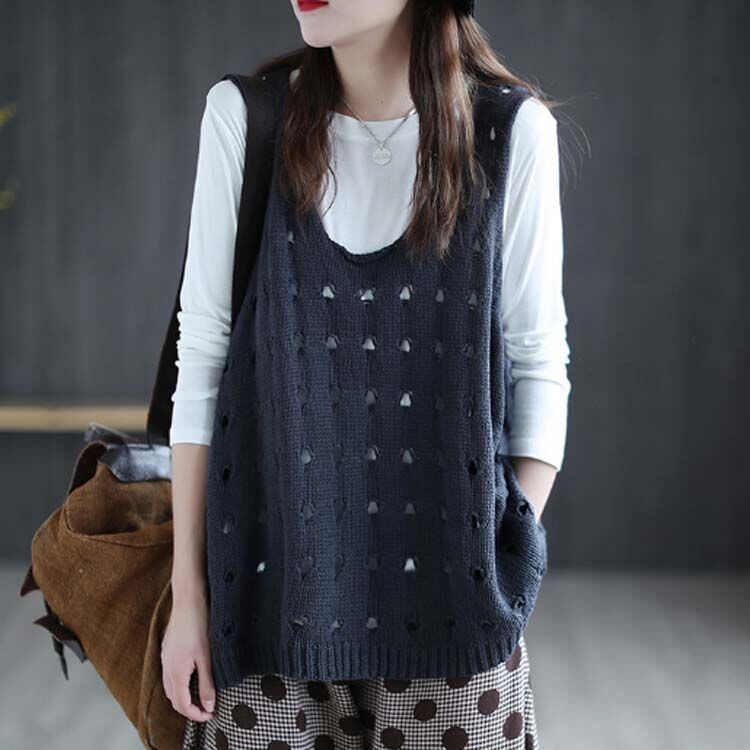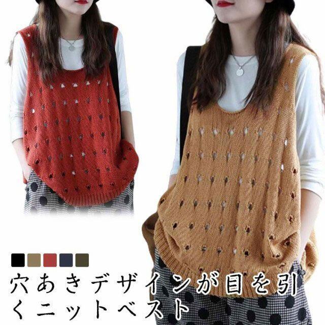 ニットベスト 穴あき レディース 春 夏 秋 Uネック ニットベスト 春ベスト 春秋 プルオーバー サマーベスト おしゃれ ゆったり 着回し トップス 体型カバー ノースリーブ 重ね着 レイヤード 透#matud601875 | オキナ商店
