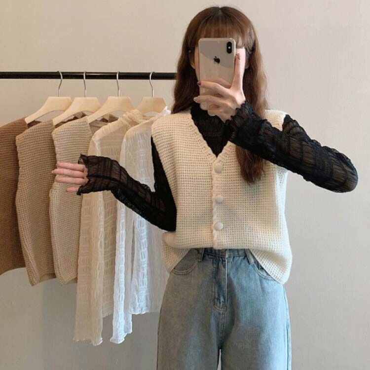 ニット レディース トップス ノースリーブ ニットベスト Vネック ワッフル編み ニットベスト レイヤード 重ね着 秋服 通勤 女子高生 前開き 春 秋 冬 秋冬 春服 カジュアル ゆったり オシャレ#matud601874 | オキナ商店