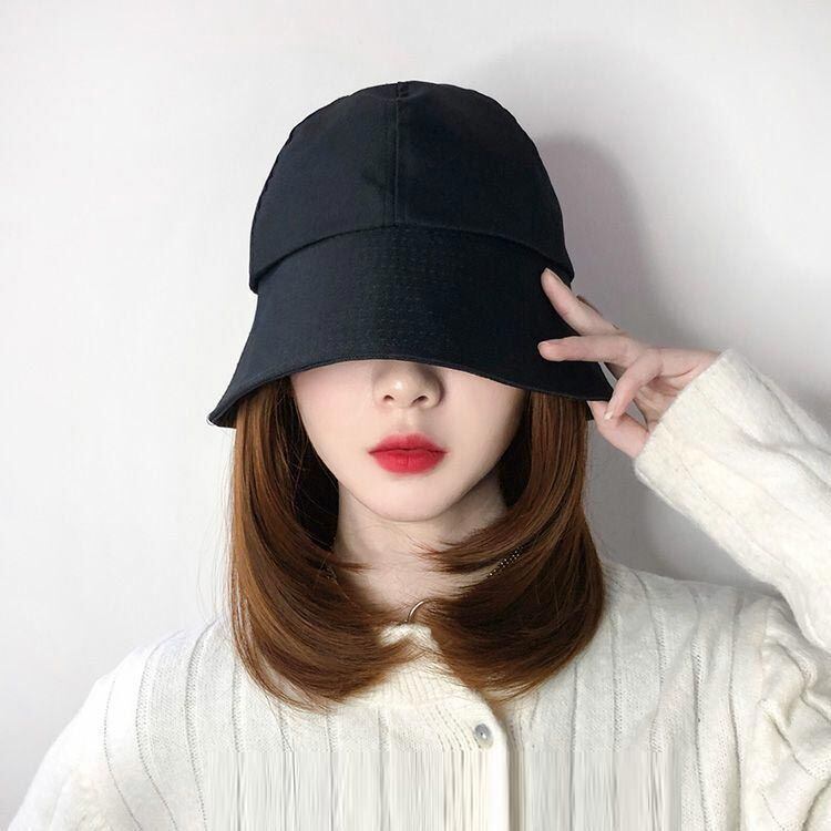 誰にでも似合うミディアムショートの髪付き帽子です。