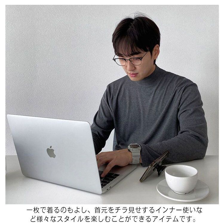 モックネック 両面起毛 長袖 シンプル モックネック カットソー インナー ハイネック おしゃれ 防寒 保温 あったか 暖かい メンズ 無地 極暖 ストレッチ tシャツ ロンt レイヤード 重ね着 秋#fleur600765 | オキナ商店