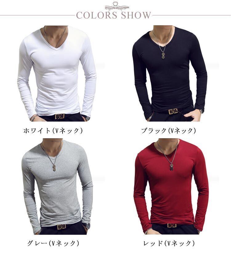 vネック&Uネックの2タイプスリムフィット長袖インナーtシャツ