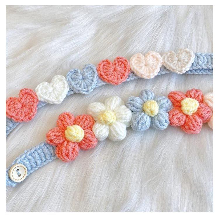 送料無料 ニットフラワーカラー 猫や子犬用 ネックレス 犬アクセサリー 子猫 首輪 女の子 男の子 ペット 安全首輪 首飾り 長さ調節可能 ペット用 アクセサリー 手編み風#yz6858 | オキナ商店