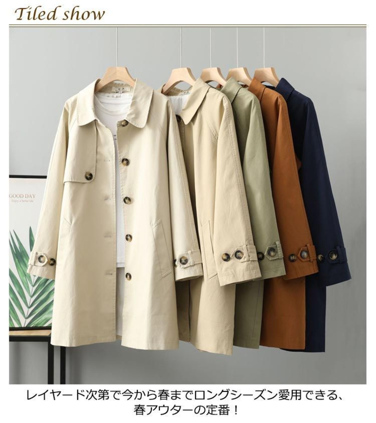 スプリングコート トレンチコート レディース シングル 通勤 春コート ステンカラーコート ビジネスコート アウター ビジネス フォーマル ライトアウター トレンチ コート 定番 無地 カジュアル オ#nin5779 | オキナ商店