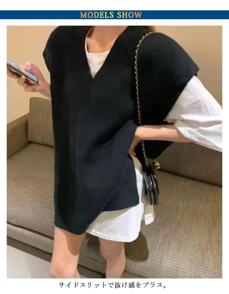 ニットベスト 2枚組 ベスト レディース Vネック サイドスリット フリーサイズ おしゃれ 体型カバー トップス ノースリーブ レイヤード オフィス カジュアル 通勤 通学 着回し 春 秋#pdd6686 | オキナ商店