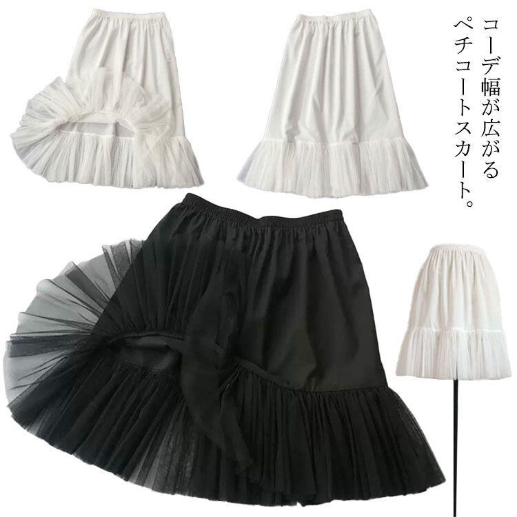 スカート ペチコート ペチスカート インナー ロング ペチコートスカート マキシ ミモレ 膝丈 下着 チュール 裾ふんわり レイヤード 重ね着 レディース ウエストゴム 春夏秋冬 白 黒 ホワイト ブ#lqc646 | オキナ商店