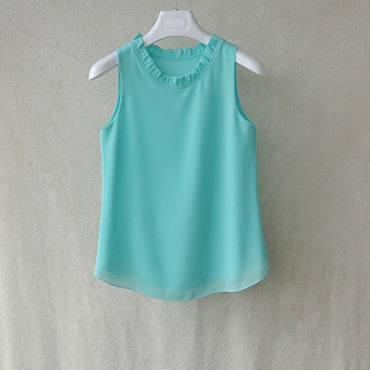 送料無料タンクトップ シフォンブラウス スカラップ襟 ノースリーブ レディース カジュアル ブラウス 無地 トップス 夏 エレガント シフォン ノースリーブシャツ フェミニン エレガント 可愛い 新作#kmc176 | オキナ商店