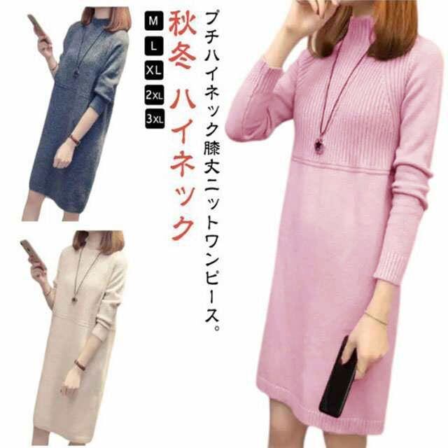 ニットワンピース ワンピース ニット レディース チュニック 長袖 トップス 膝丈 秋冬 ニットソー ロングワンピース ハイネック カジュアル ニットワンピ 膝丈ワンピース オシャレ 黒 きれいめ プ#kkk09218 | オキナ商店