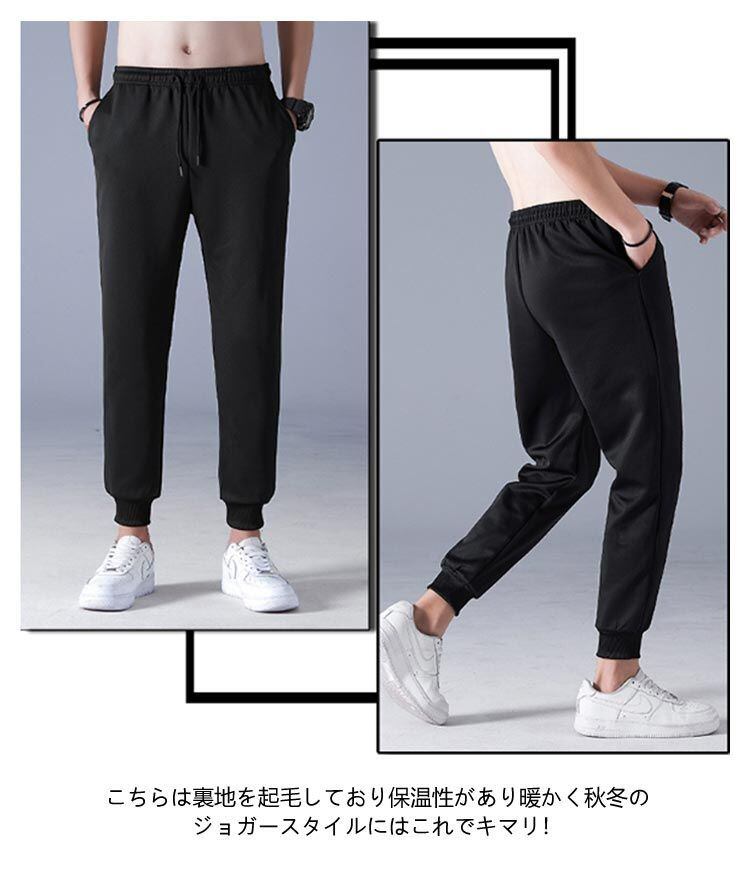 こちらは裏地を起毛しており保温性があり暖かく秋冬のジョガースタイルにはこれでキマリ!