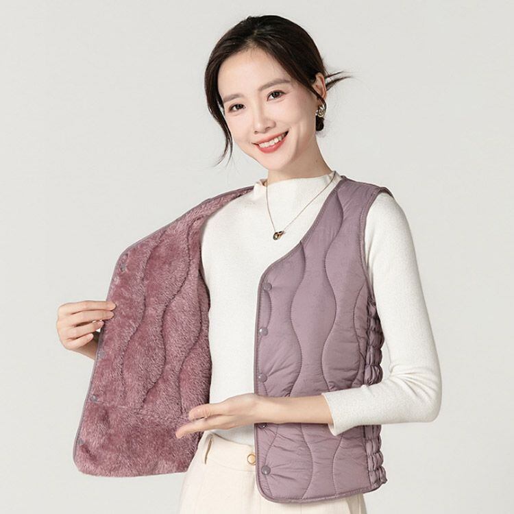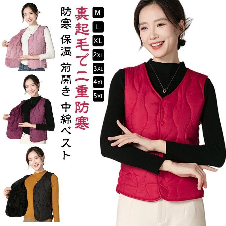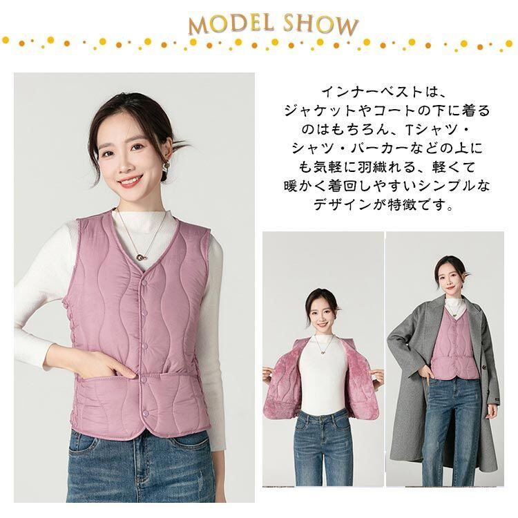 インナーベスト 裏起毛 レディース 中綿 ベスト Vネック 裏ボア 前開き 中綿ベスト ダウンベスト 秋 冬 インナーダウン キルト 波型 キルティング ベスト インナー 厚手 ポケット付き あったか#zyz9611 | オキナ商店