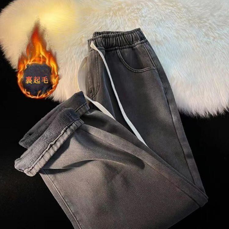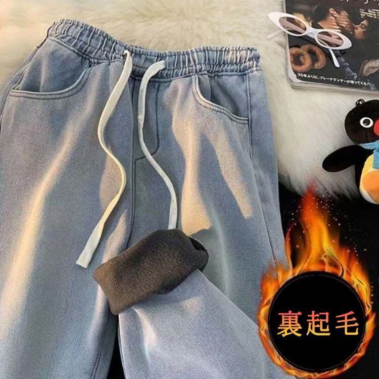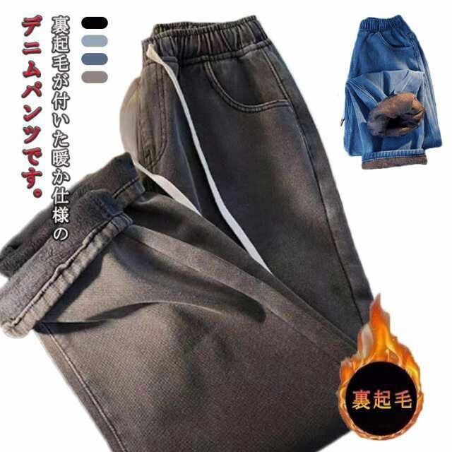 ウエストゴム あったか ジーンズ 裏起毛 デニムパンツ 厚手 ジーパン レディース ワイドパンツ 冬 ハイウエスト ストレートパンツ ゆったり 着痩せ 秋 デニム パンツ 大きいサイズ 防寒 暖かい #sour1448 | オキナ商店
