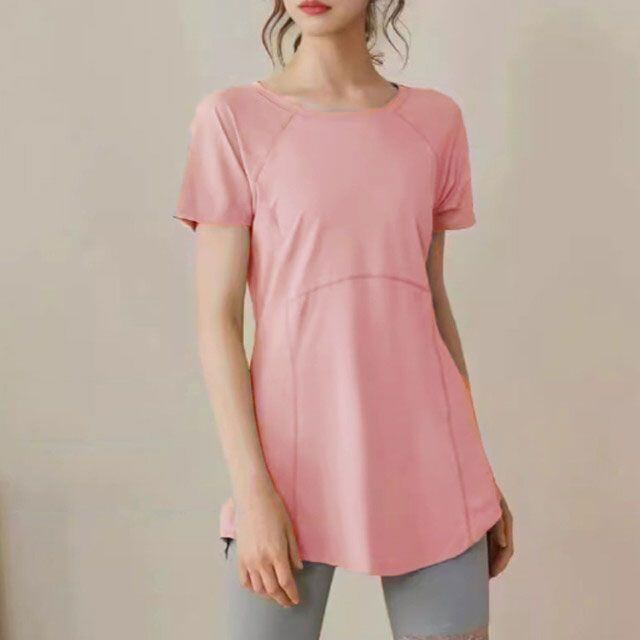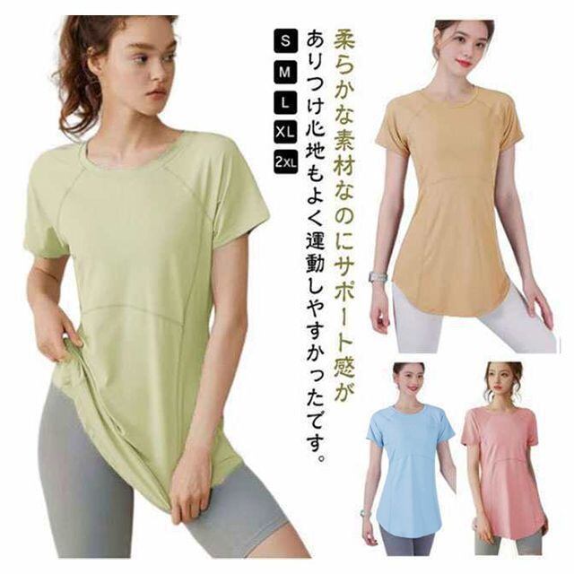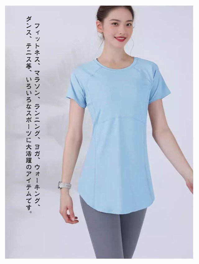 ヨガウェア レディース トップス 長め ロング丈 Tシャツ 半袖 ホットヨガ フィットネス ヨガ ジム スポーツウェア トレーニングウェア 重ね着 吸汗速乾 大きいサイズ ドライ 送料無料#shenf1518 | オキナ商店