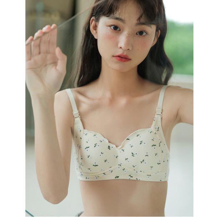 2枚セット ノンワイヤーブラ シンプル 小胸ブラ 高校生 可愛い 花柄 盛れる ブラジャー かわいい 中学生 ファーストブラ 補正 ナイトブラ 小さいサイズ Aカップ 10代 20代#leqqw852 | オキナ商店