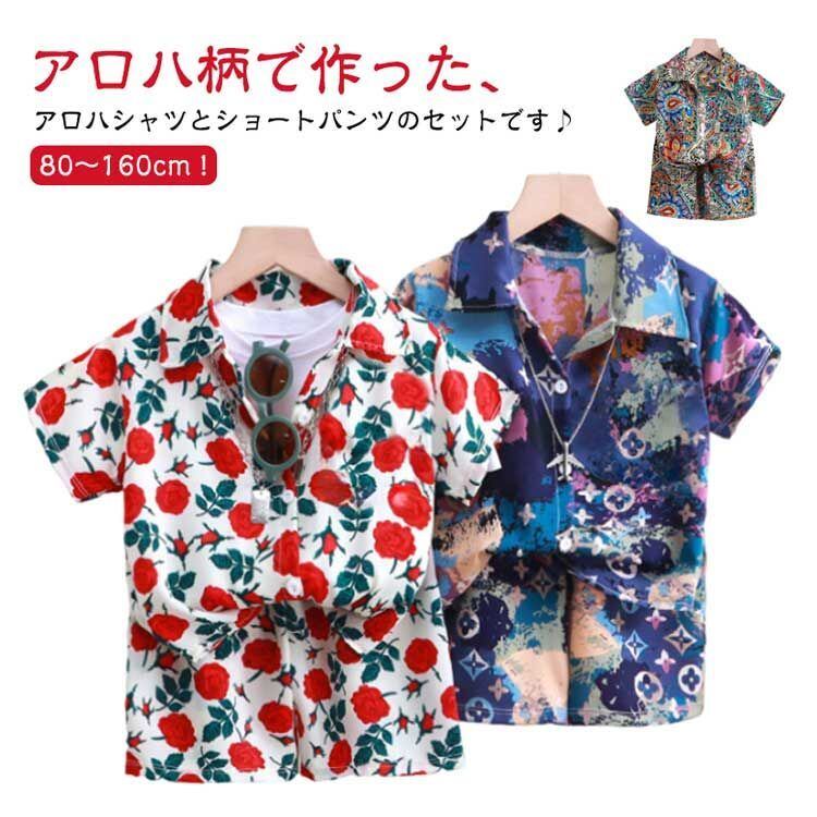 キッズ アロハシャツ セットアップ 男の子 女の子 アロハシャツ ショートパンツ 2点セット 子供服 半袖シャツ ハーフパンツ 上下セット 子ども 総柄 ベビー服 ジュニア 春夏 リゾート 海 ビーチ#shenf746 | オキナ商店