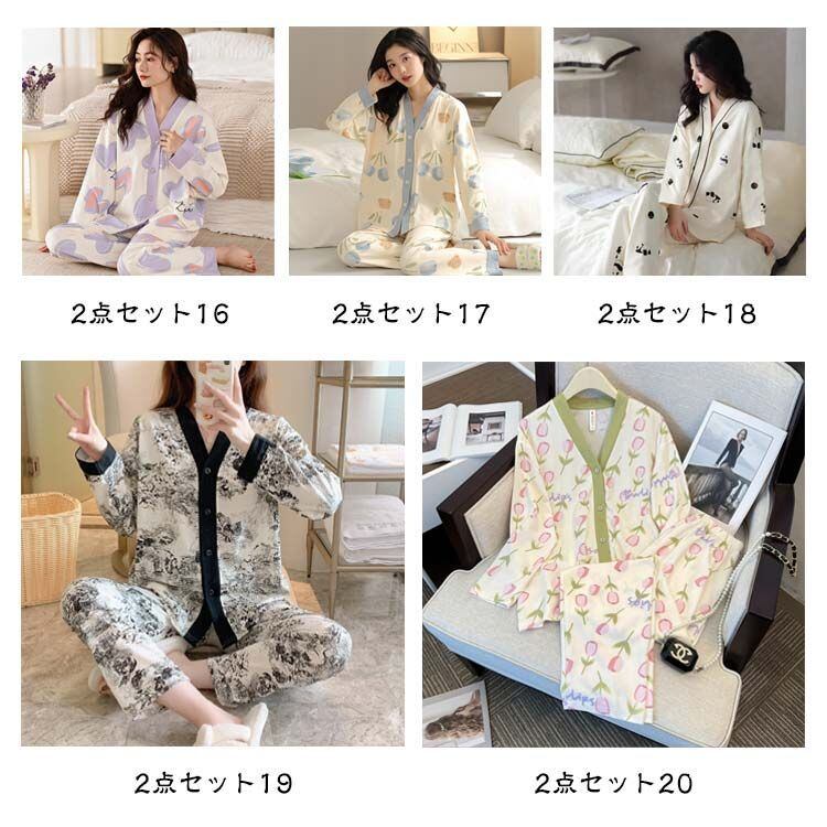 パジャマ 2点セット レディース セットアップ ルームウエア 長袖 前開き ロングパンツ 上下セット 薄手 春 秋 花柄 アニマル柄 大きいサイズ ウエストゴム 部屋着 ナイトウェア リラックス ワン#shenf1431 | オキナ商店