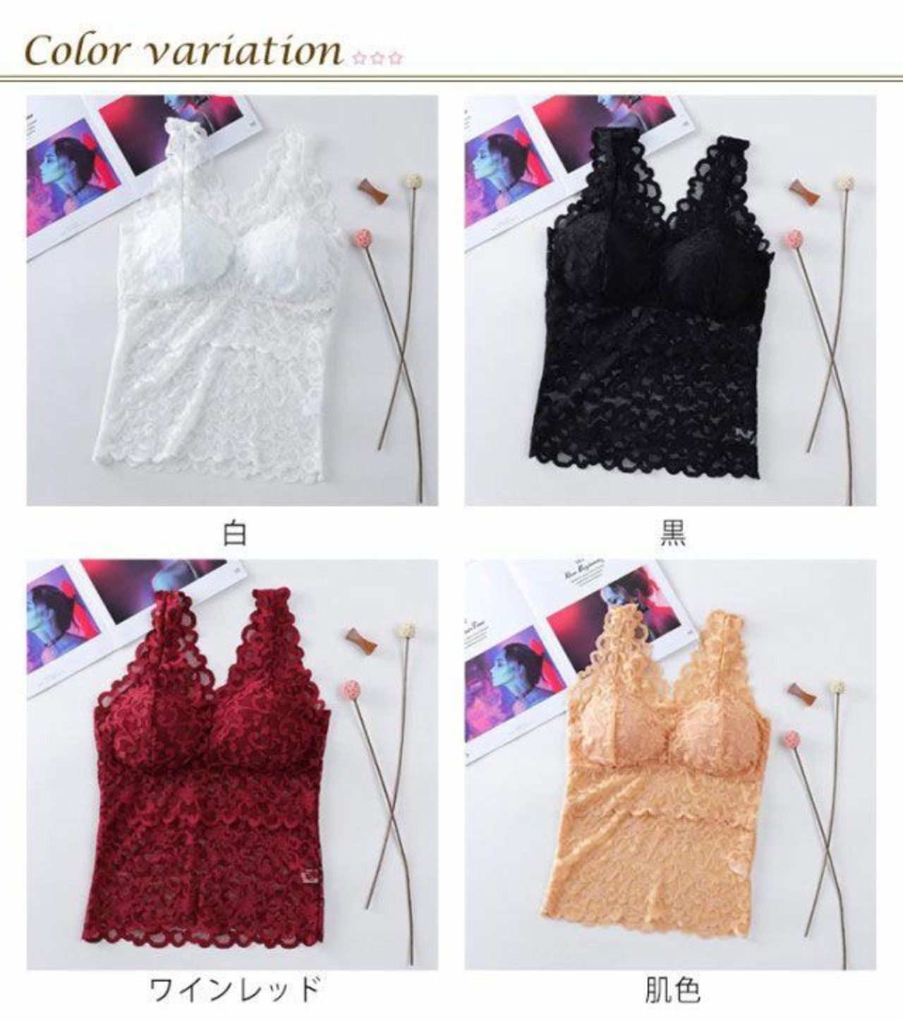 総レース ブラトップ カップ付 キャミソール レディース ナイトウェア タンクトップ ブラキャミ インナー トップス アンダーウェア ブラ 部屋着 ルームウェア 肌着 キャミ レース 薄手 見せブラ #song1466 | オキナ商店