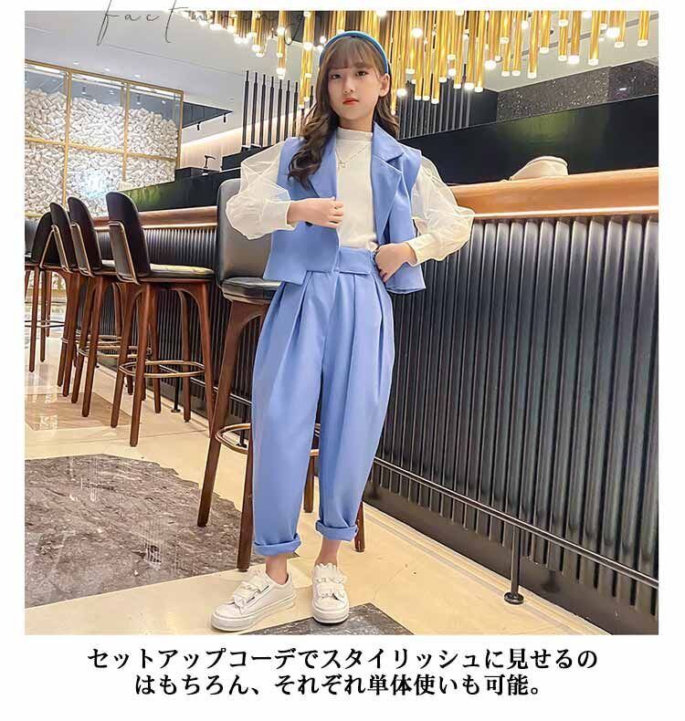 フォーマルスーツ 3点セット 子供スーツ 女の子 ジレ ブラウス パンツ 卒業式 スーツ 小学生 キッズスーツ ベスト 子供服 こども服 パンツスーツ ゆったり 女児スーツ カジュアル 無地 おしゃれ#lella348 | オキナ商店