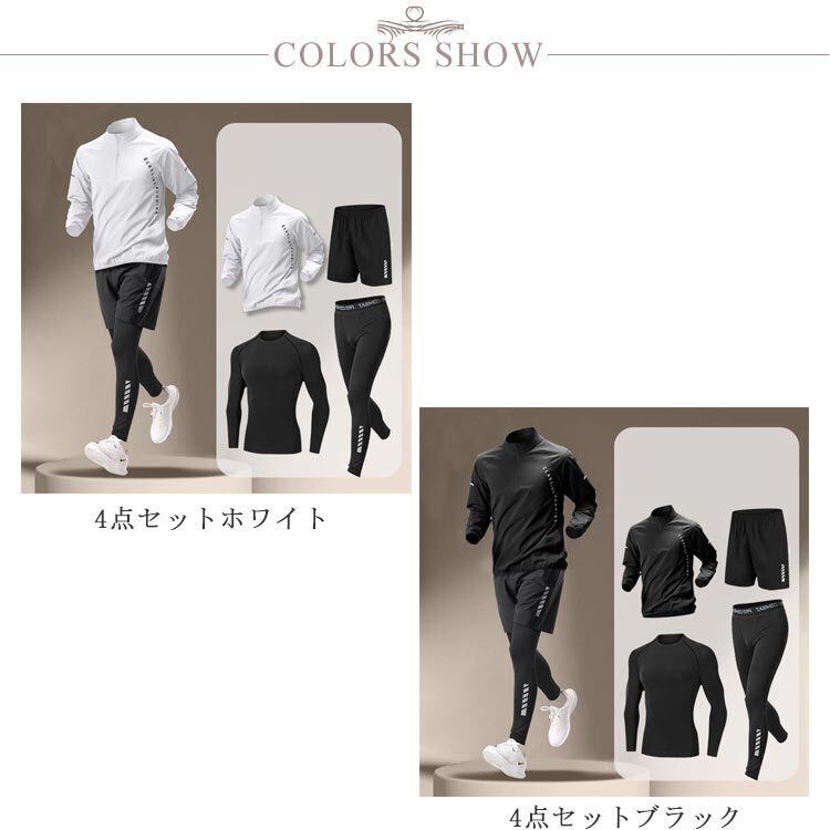 【4点セット】 トレーニングウェア 上下セット 長袖 メンズ 接触冷感 スポーツウェア セットアップ 吸水速乾 コンプレッションウェア ジムウェア 運動着 ランニングウェア ウォーキング ウェア ジャ#lella3072 | オキナ商店