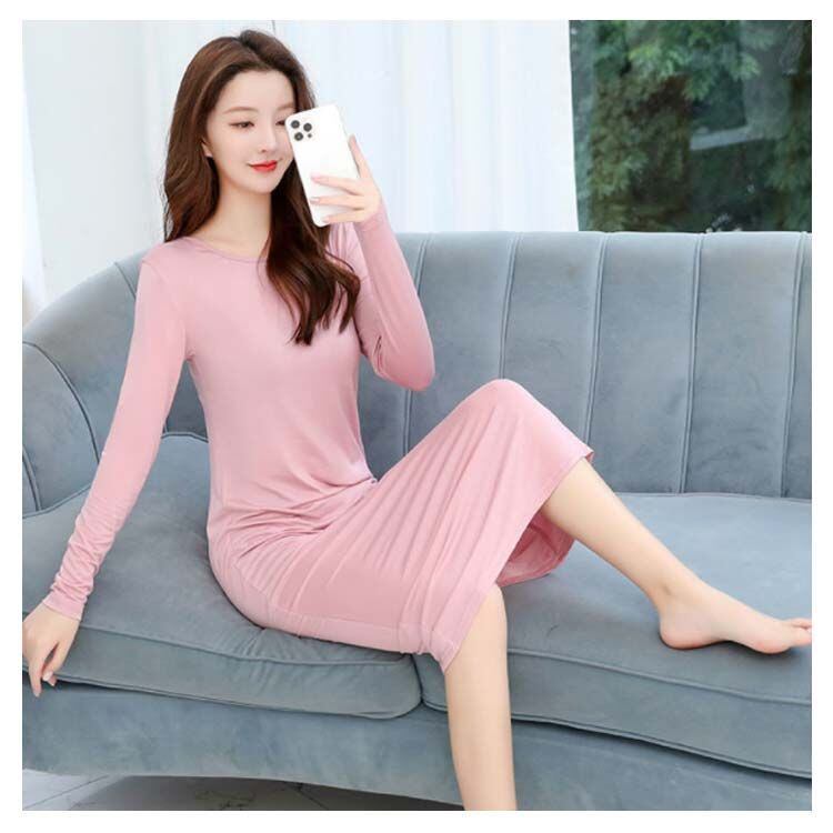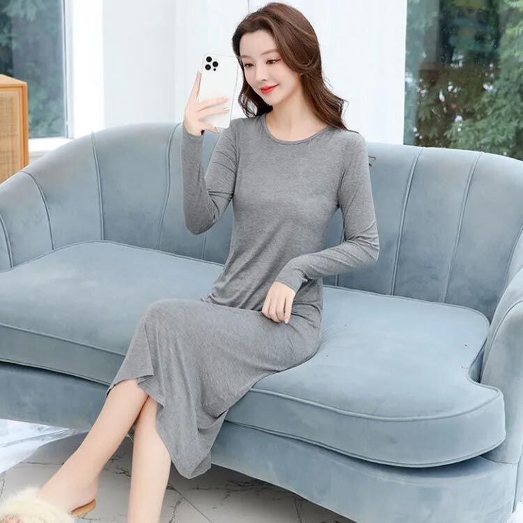 インナーワンピース レディース コットン 春秋 長袖 大きサイズ ロングワンピース ルームウエア インナーウエア 丸襟 ミモレ丈 無地 送料無料 シンプル カジュアル おしゃれ ロングワンピ フェミニ#luyy1280 | オキナ商店