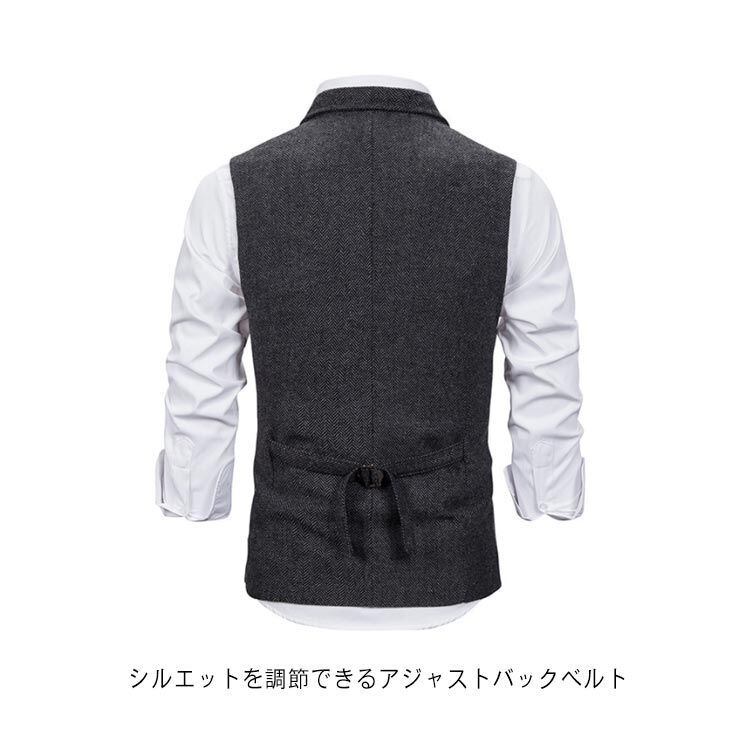 ベスト メンズ スーツ ジレベスト 前開き ジレ ヘリンボーン柄 ツイード スリム 細身 ビジネス テーラード 襟付き 厚手 結婚式 成人式 カジュアル フォーマル 紳士 フォーマル ゴルフ 暖かい #pdd5307 | オキナ商店
