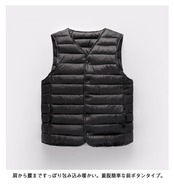 コンパクトなシルエットで、スーツの中に重ねても着ぶくれしないのでインナーベストとしても大活躍。
