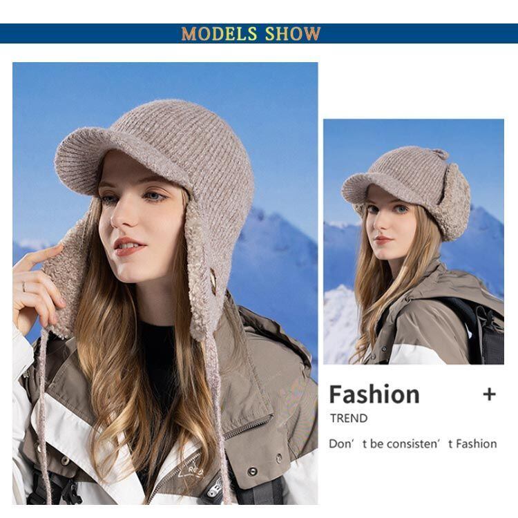 ニット帽 耳あて つば付き 耳当て 冬 レディース メンズ キャップ 暖かい 大きいサイズ 裏起毛 帽子 あったか 保温性 2way かわいい おしゃれ 小顔効果 大きめ 通勤 通学 大人 学生 旅行#pop2748 | オキナ商店
