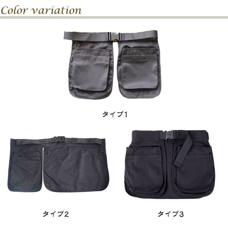3タイプが選べる!豊富な収納力で使えるワーキング ショートエプロン。ウエストポーチのような感覚で便利に使えるツールエプロン。