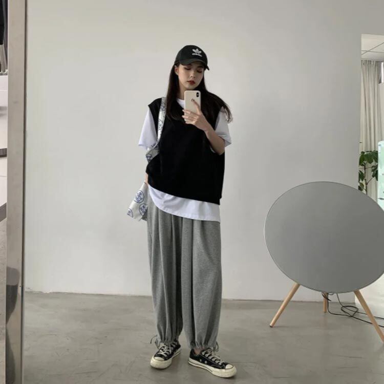 ベスト レディース スウェット ジレ Vネック チョッキ ベスト ノースリーブパーカー 春 夏 トップス プルオーバー トレーナー ゆったり レイヤード 重ね着 大人可愛い 韓国 おしゃれ 無地 大き#amyz4704 | オキナ商店