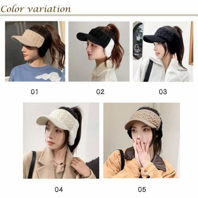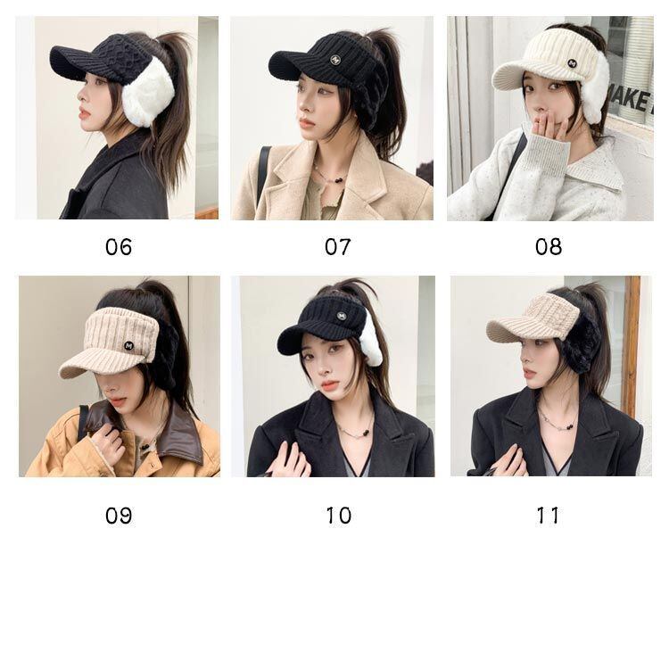 寒い季節もオシャレにウォーム感UP!耳あて付きのニットサンバイザー。