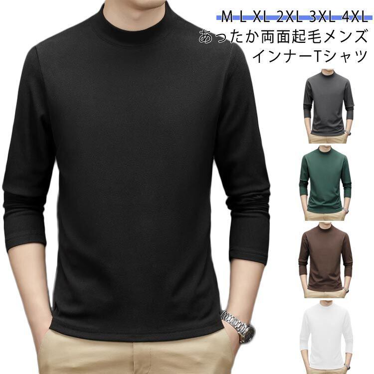 【送料無料】 両面 起毛 インナー あったかい あったかインナー ヒート インナー ヒートテック 冬 ストレッチ メンズ Tシャツ 保温 保湿 温感 ハイネック 長袖 無地 黒 安い 肌着 クルーネッ#goudoudou4075 | オキナ商店