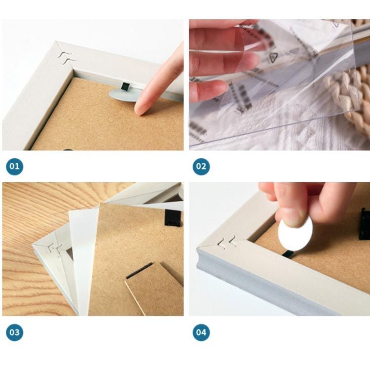 写真収納箇所はアクリルカバー、台紙、背面板の三重構造になっています。