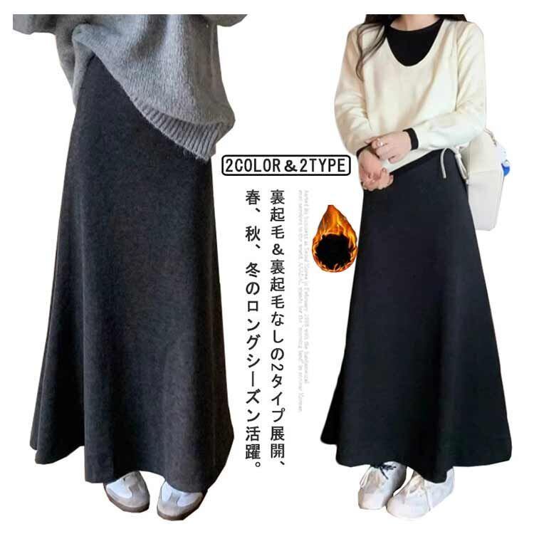 裏起毛&裏起毛なし スカート ロングスカート マキシスカート タイトスカート フレアスカート 厚手 秋冬 春 ウエストゴム ハイウエスト 裏起毛 ロング丈スカート 無地 着痩せ 細身 上品 お洒落 送#yojf1965 | オキナ商店