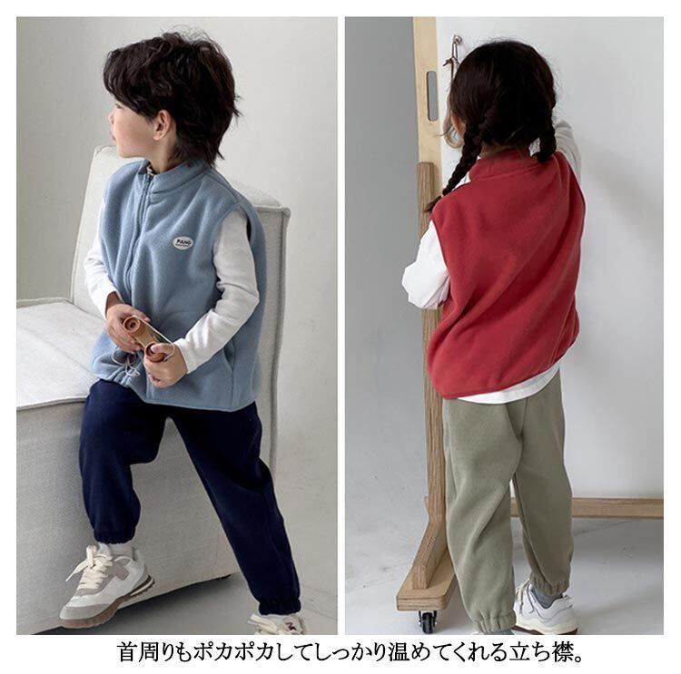 送料無料 ボアフリースベスト キッズ ボアベスト 立ち襟 スタンドカラー ジップアップ ベスト もこもこ 暖かい ノースリーブ ブルゾン アウター 子供服 防風 防寒 保温 秋冬 男の子 女の子 10#yojf1780 | オキナ商店