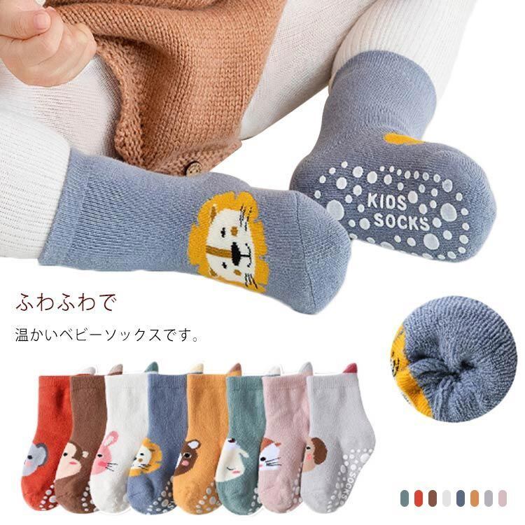 ベビー靴下 送料無料 厚手 ベビー 靴下 ベビーソックス 滑り止め付き ソックス 赤ちゃん用靴下 滑り止め アニマル くすみカラー ベビー用 ベビー用品 ベビーグッズ 出産祝い お誕生日 プレゼント #yjq389 | オキナ商店