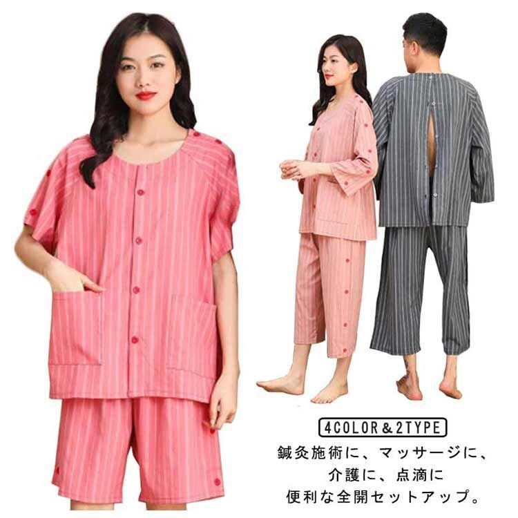 鍼灸服 マッサージ服 サロン サウナ お灸 服 介護 パジャマ 患者衣 上下 メンズ レディース 全開 コットン 綿 介護用パジャマ ねまき 寝巻き 施術 手術 高齢者 シニア 部屋着 ルームウェア #yojf1312 | オキナ商店