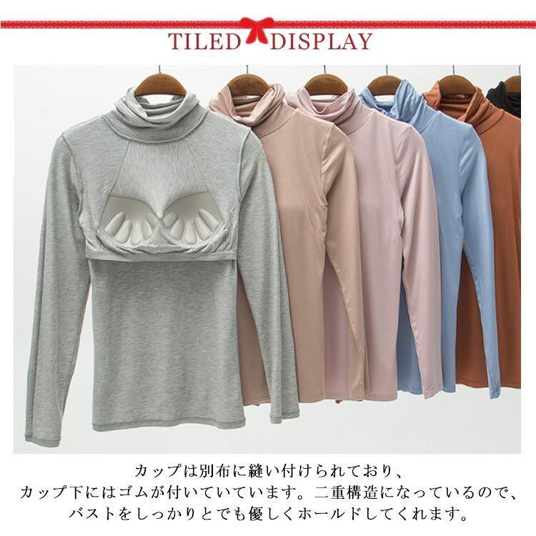 カップ付き ブラトップ インナー レディース カップ付きインナー タートルネック ハイネック 大きいサイズ カットソー Tシャツ 肌着 部屋着 アンダーウエア ストレッチ 伸縮性 締め付けない シンプ#wunib1633 | オキナ商店