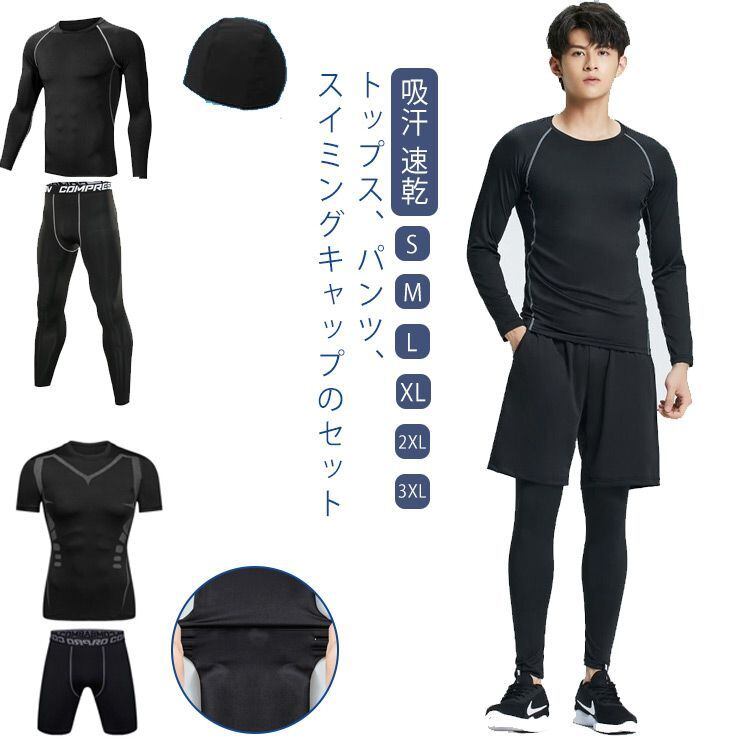 フィットネス水着 水着 メンズ ラッシュガード 2点セット 上下セット 半袖 長袖 サーフパンツ ショートパンツ UVカット ロングパンツ 吸汗 速乾 おしゃれ 日焼け防止 スポーツ スイムウェア 練#whhdw5662 | オキナ商店