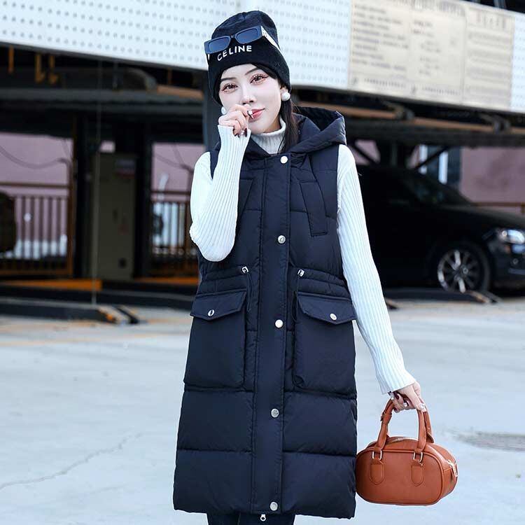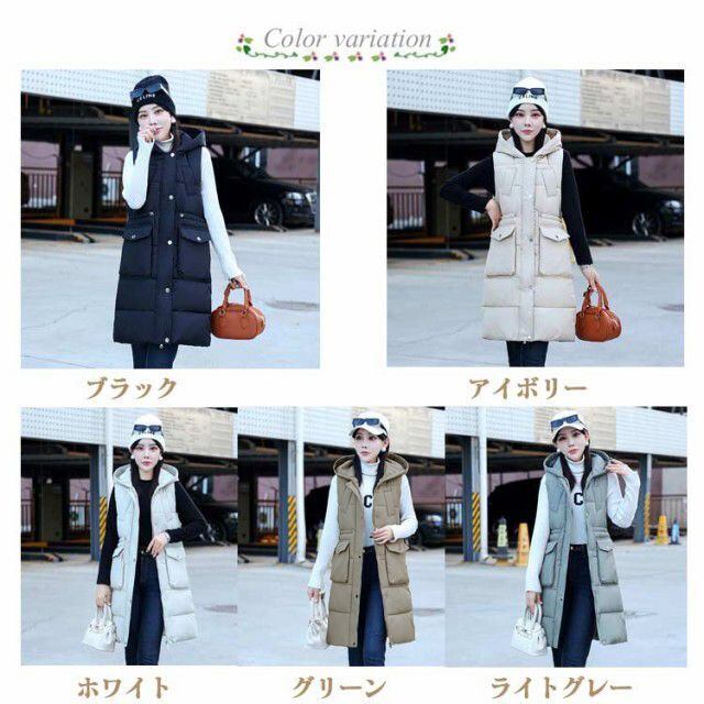 ファイバーダウン ロングベスト レディース 中綿ベスト ロング丈 フード付き コート エコダウンコート エコダウンベスト 秋 冬 アウター ノースリーブ 中綿コート スリム 細身 無地 あったか 防寒#zyz9642 | オキナ商店
