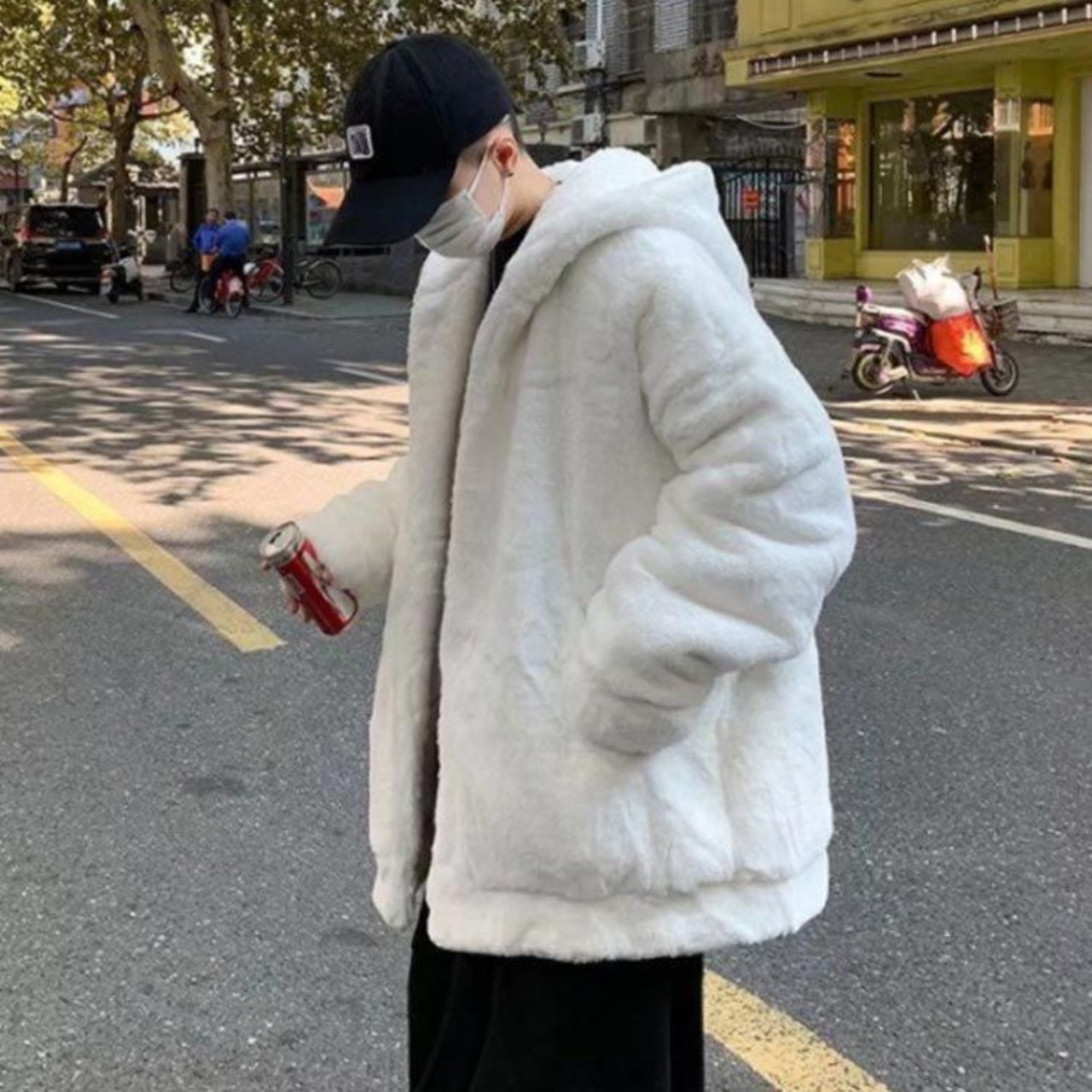 無地 ボアジャケット ボア ブルゾン メンズ ジップアップブルゾン ファーコート フード付き ライトアウター パーカー シープボア 羽織 フェイクファー もこもこ 暖かい 厚手 おしゃれ 防寒 秋冬 #mjx4642 | オキナ商店