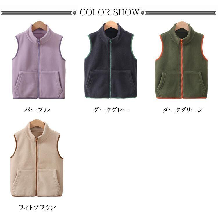ボアベスト キッズ ベスト フリース ボアジャケット ノースリーブ 子供 ジュニア アウター 羽織り ハイネック 男の子 女の子 もこもこ あったか 防寒 保温 子供服 春 秋 冬 通学 通園 無地 #lulum382 | オキナ商店